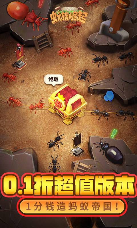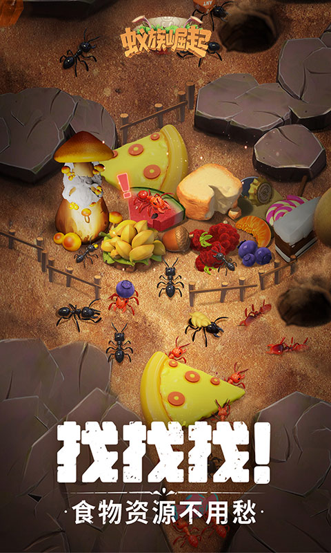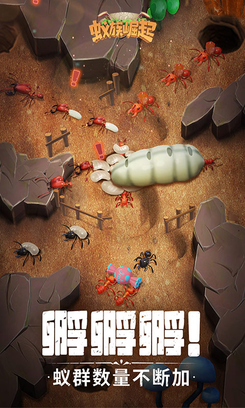 造蚂蚁王国,与何止百万玩家斗智斗勇,招蚁族豪将,丰富阵营赢下战争! 在《蚁族崛起》你将作为蚁族统帅,建造你的专属蚂蚁王国。神机妙算的三国英雄、智勇双全的凯撒,还有数位出类拔萃的豪将,都等待你招募入队,成为蚁族中坚!通过资源囤积、城防修建、战力提升,将一方蚁穴壮大成为兵「蚁」强壮的王国城邦!与百万玩家结盟或是为敌,抵御强敌进攻,联手攻克城池,战无不胜,攻无不取,成为地下世界的霸主! 与此同时,游戏还采用技术前沿的引擎开发,呈现高品质的画面。画面还原蚂蚁与战争细节,玩家可以尽情感受微观世界的对决乐趣,在神奇的蚂蚁世界中招兵征战。