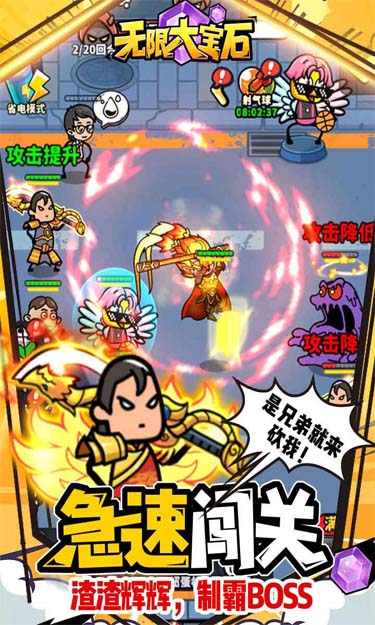 《无限大宝石》是一款卡牌福利放置手游。鲲鲲突鸡,唱!跳!rap!篮球!嗨翻全场!创角抽取无敌鲲拳宗师,零氪就畅玩,首充即大佬,轻松碾压boss,称霸全服,即刻享受大户快感!