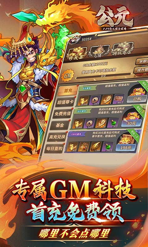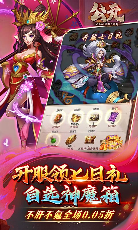 《公元(0.05折三国全武将)》是一款策略三国卡牌手游、区别于其他卡牌游戏、上线即送全武将,随意搭配阵容、可以对角色精确的认知搭配来规避伤害、让战斗更有操作感、战斗过程变化莫测、武将各具特色、所有武将都有独到的定位与作用、称霸三国霸占指日可待~