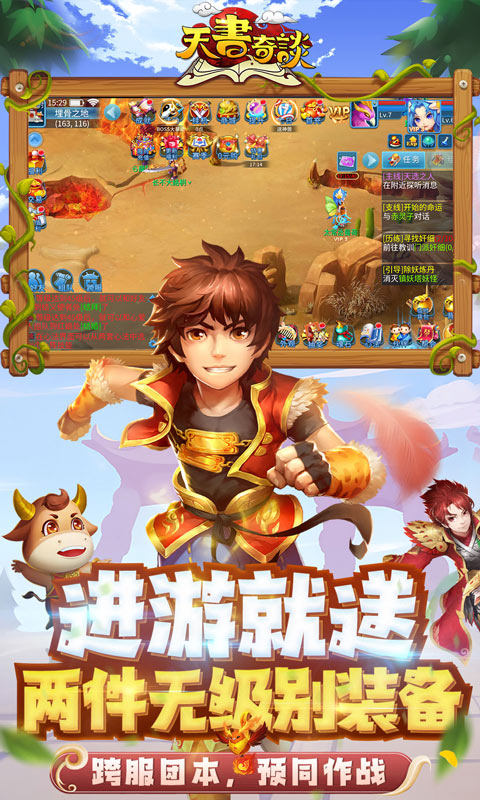 新的回合,新的十年!《天书奇谈》根据经典页游《天书奇谈》正版授权改编,为8000万书迷带来原汁原味的天书世界。 毕争魔王降临、坠龙城血战、天狼退敌,热血剧情再现;炫酷萌宠、个性时装、绚丽羽翼,呈现百变造型。更多内容、更多玩法,共同体验不一样的回合趣味!
